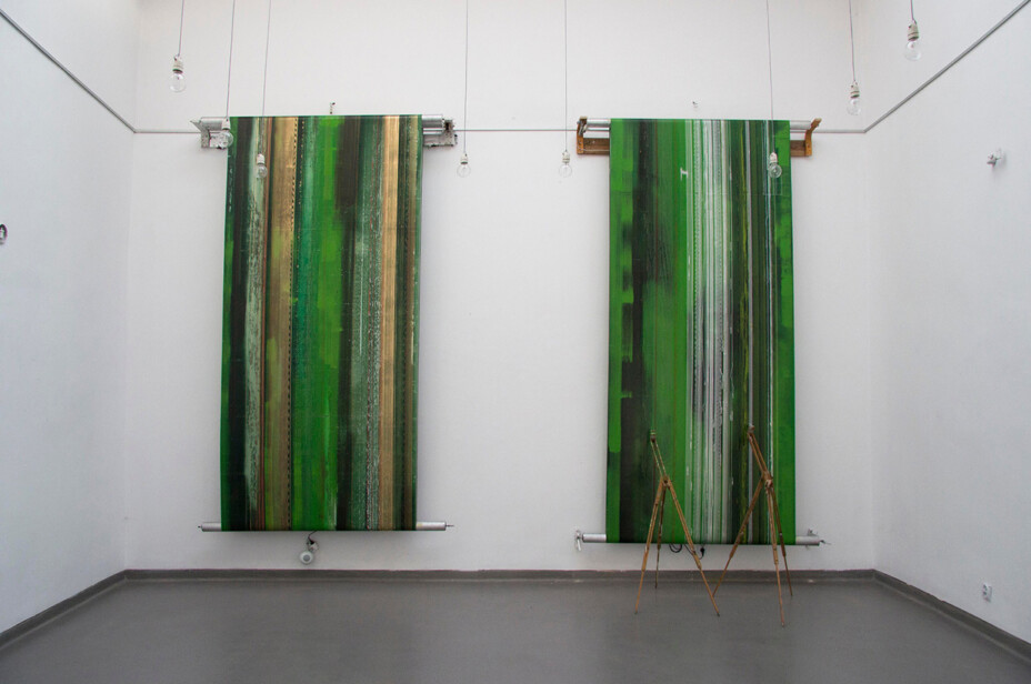Dwuwymiarowa płaszczyzna obrazu malarskiego ze swoją materią i kolorem to punkt wyjścia do realizacji obrazów / obiektów kinetycznych. Rozbudowałem je w przestrzeni, wprawiłem w ruch i domknąłem całość w rytmicznie powtarzającym się module czasu. Istotną rolę w instalacjach przestrzennych zaczęły odgrywać projekcje świetlne, z użyciem intensywnych odcieni zieleni.
